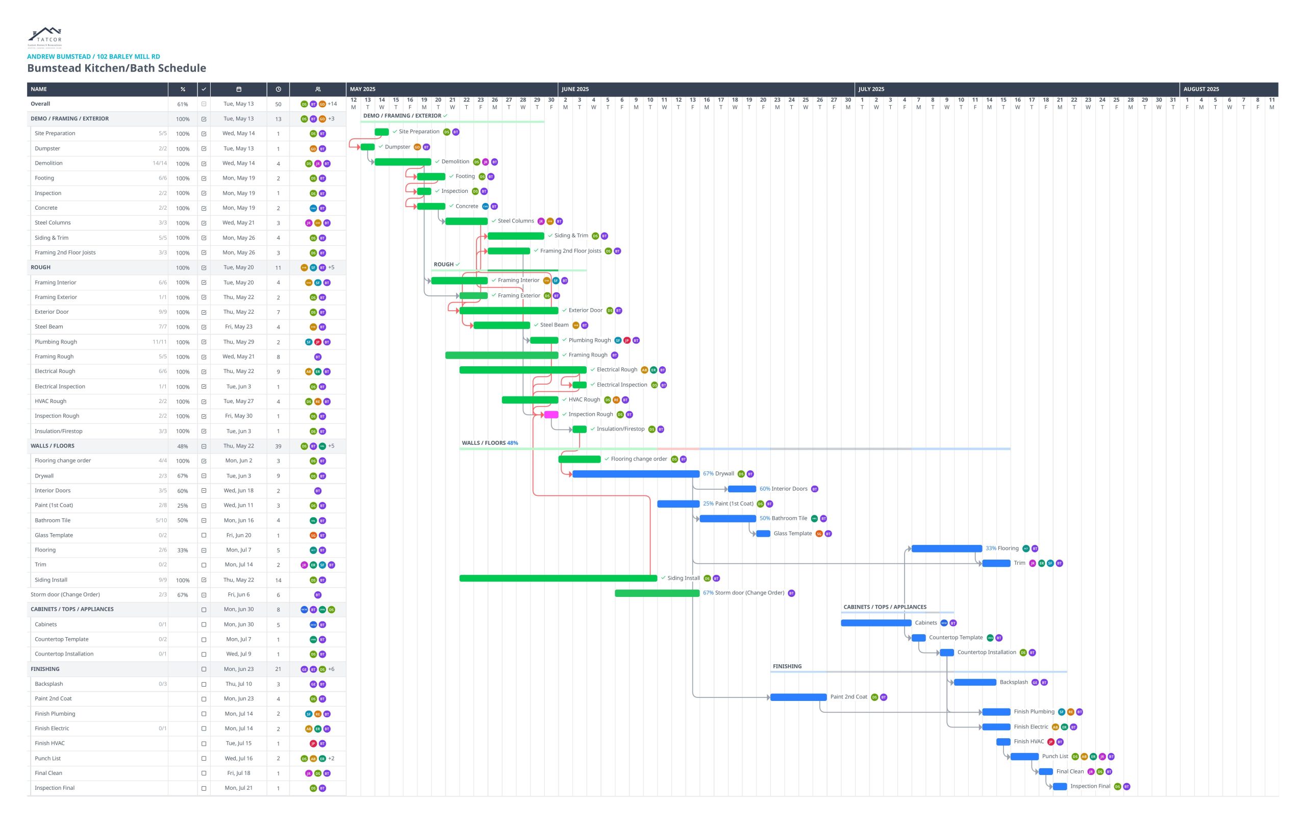 Communication, Schedules, Customer Orders, Selections, Budgets/Allowances are essential elements of our on-line Project Management System.